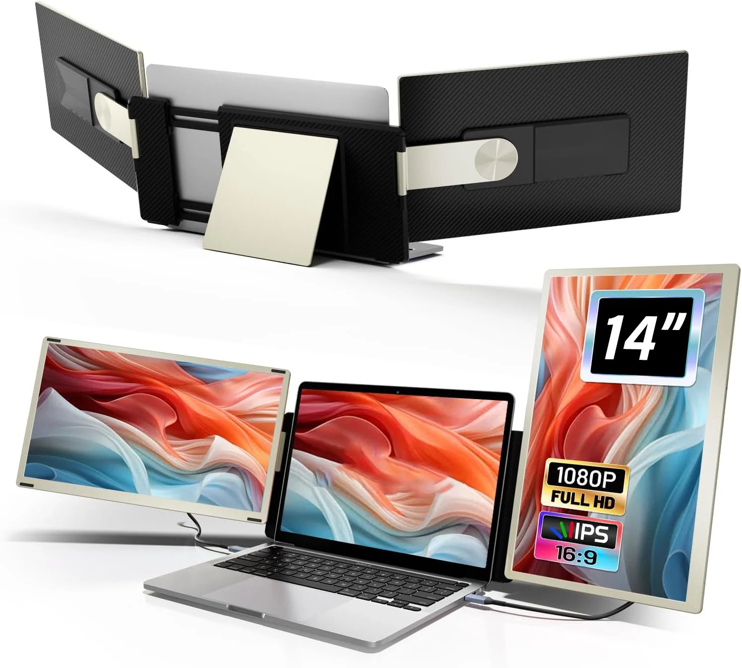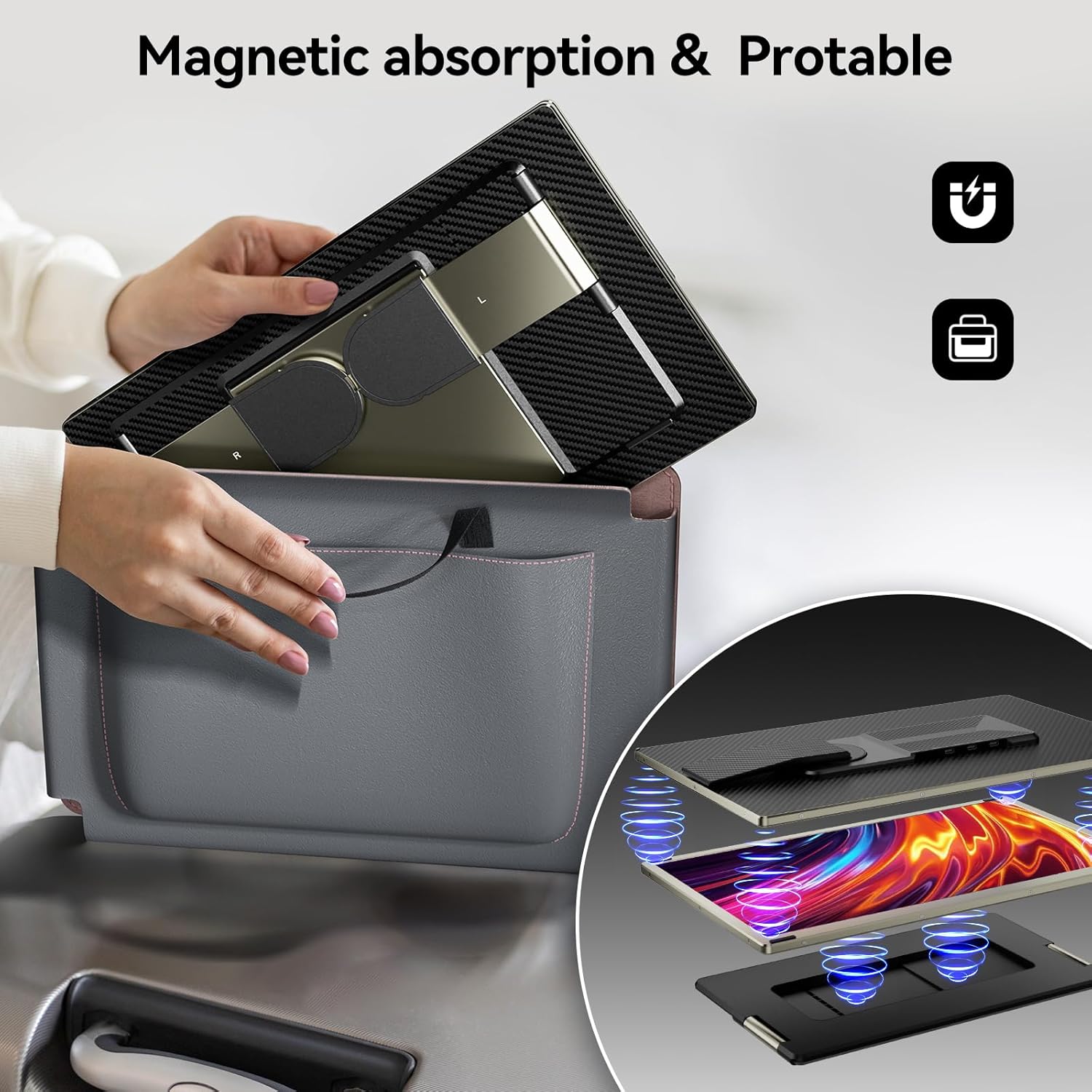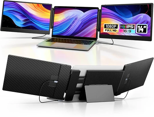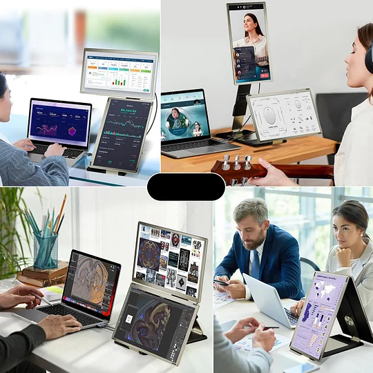 - [Portable Design]: The Laptop Portable Expandable Display Frame comes with a magnetic cover to securely hold the dual expandable displays together and a laptop case for added portability. Whether you're in the office, traveling, or working from home, it's easier to create your mobile workstation.