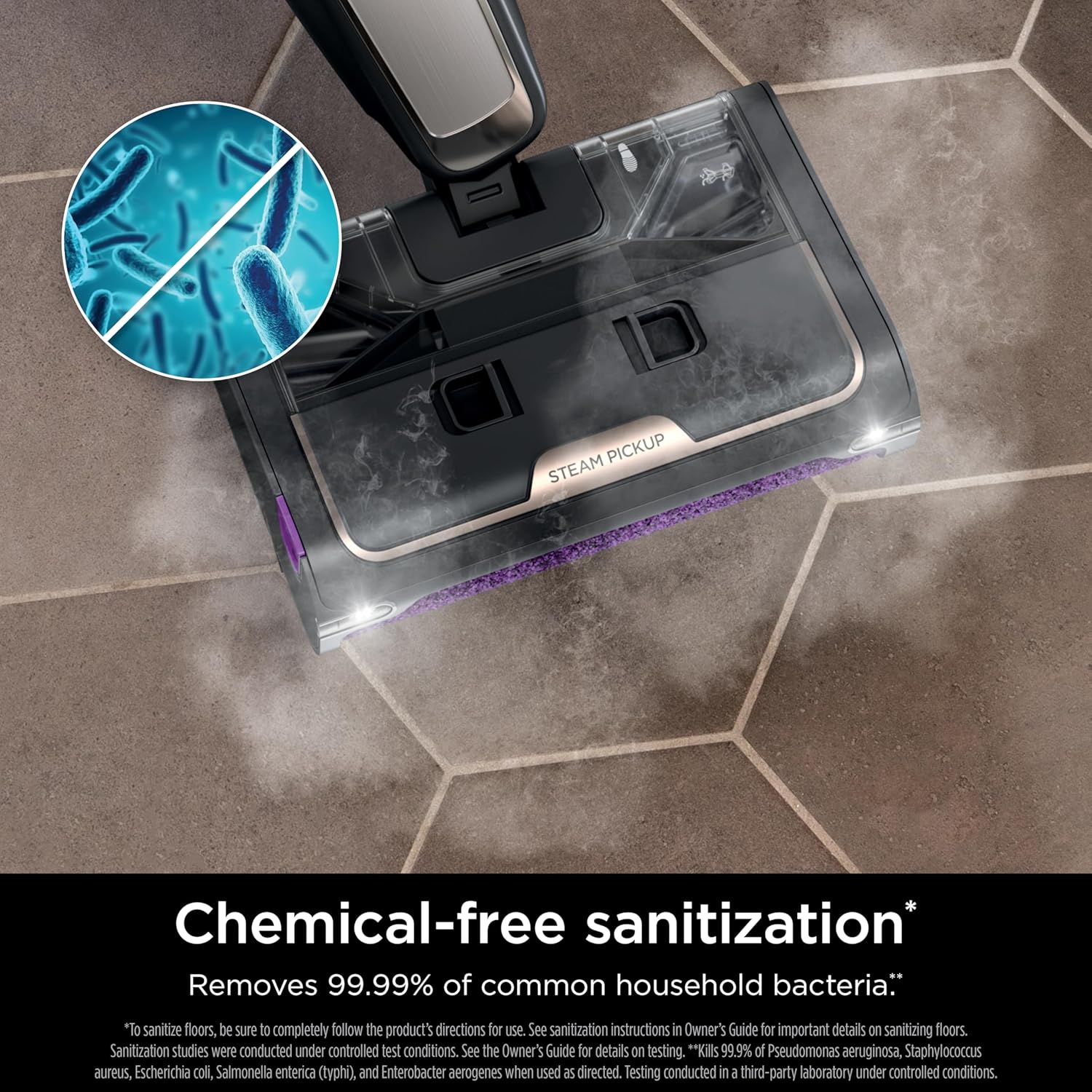 - CHEMICAL-FREE SANITIZATION: Eliminates up to 99.9% of common household bacteria* with the sanitizing power of steam. No harsh chemicals - just add water.
